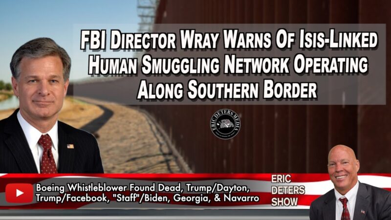 02:14 Eric Deters Show2 years ago FBI Director Wray Warns Of Isis-Linked Human Smuggling Network Operating Along Southern Border FBI Director Wray Warns Of Isis-Linked Human Smuggling Network Operating Along Southern Border | Eric Deters Show | March 12, 2024 We... view more